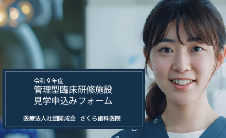 2026.03.09 お知らせ 令和9年度 臨床研修歯科医 見学受付開始のお知らせ 令和9年度の臨床研修歯科医の見学受付を開始いたします。 見学をご希望の方は、下記の見学申込みフォームよりご希望の日程をご予約いただきますようお願いいたします。 カテゴリ お知らせ